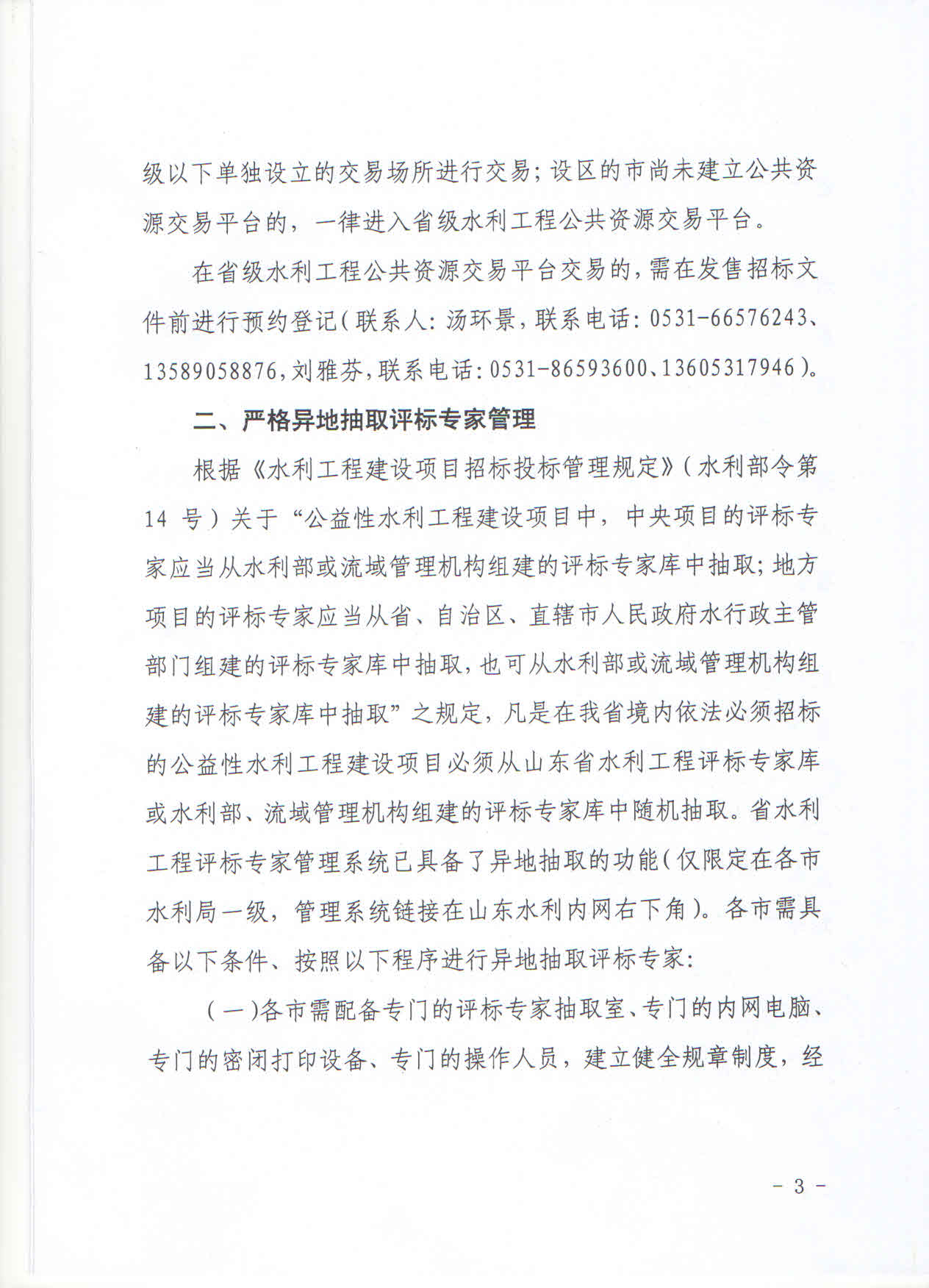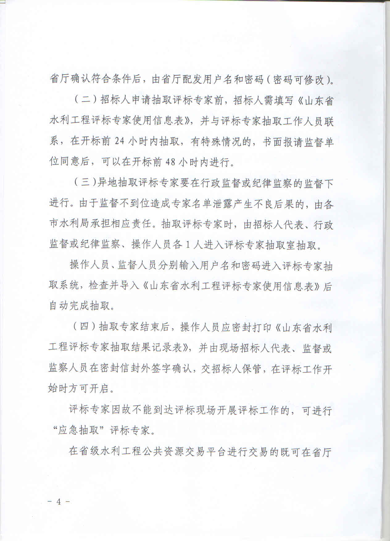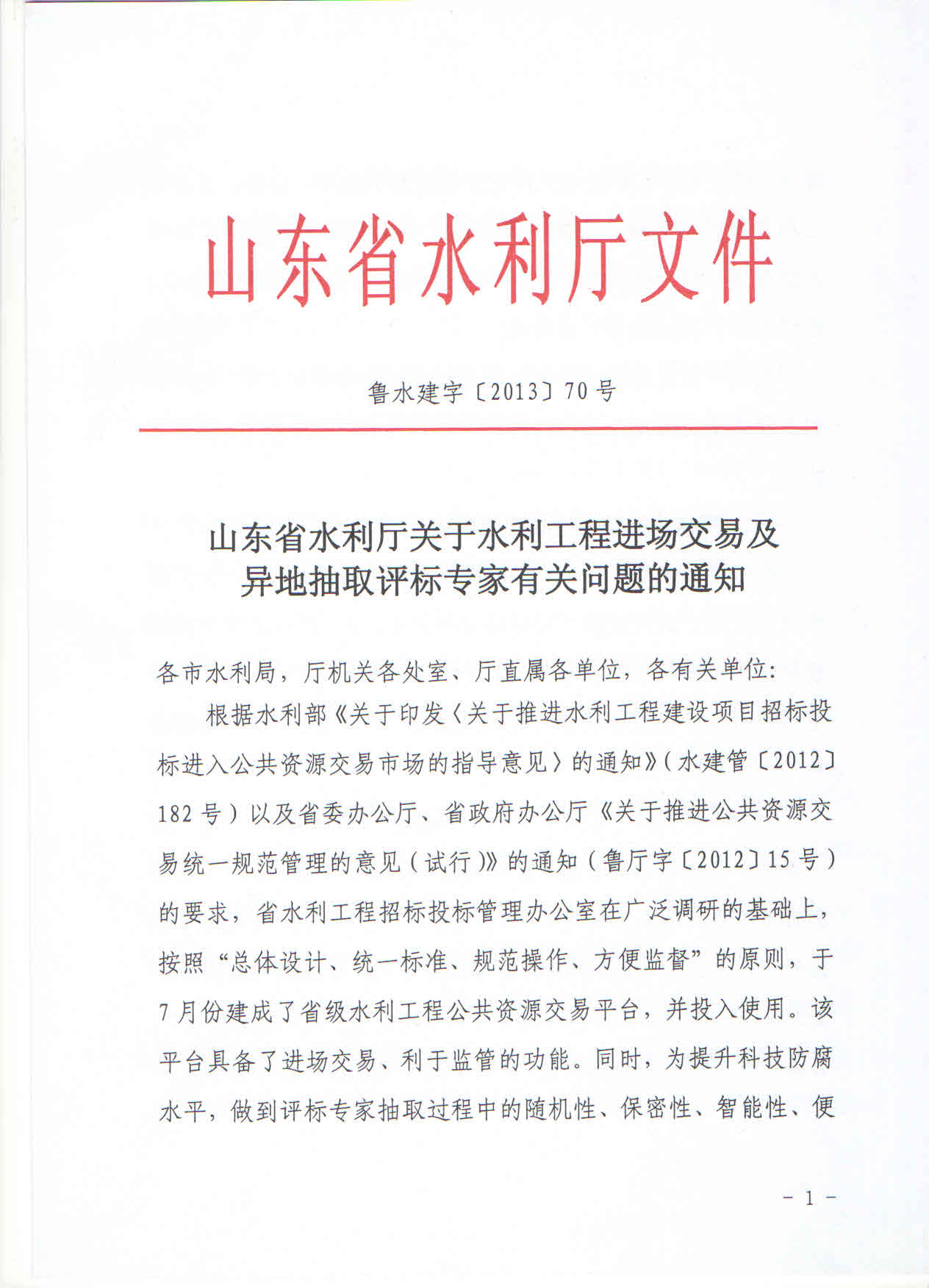 山東省水利廳關(guān)于水利工程進(jìn)場(chǎng)交易及異地抽取評(píng)標(biāo)專家有關(guān)問(wèn)題的通知